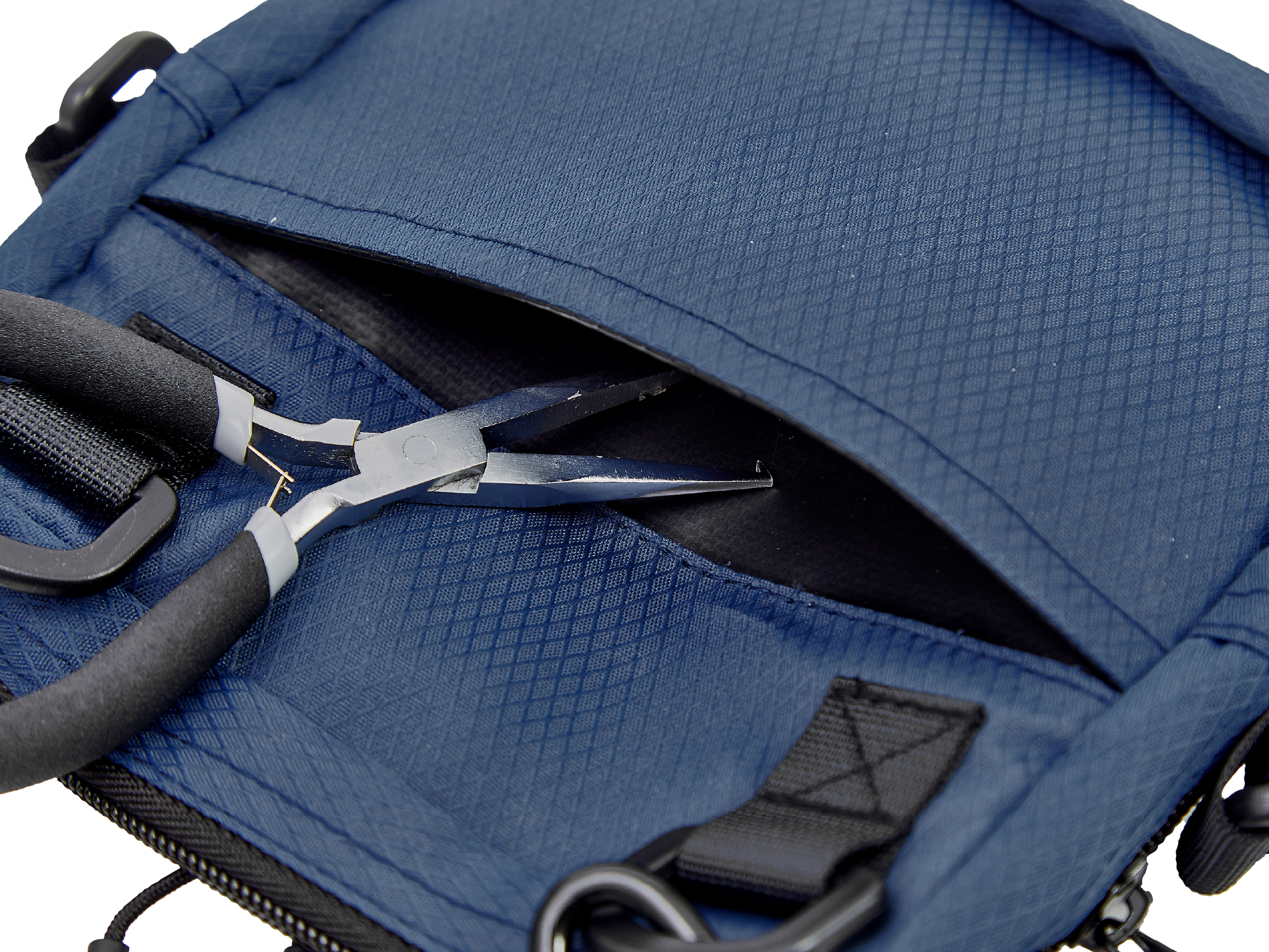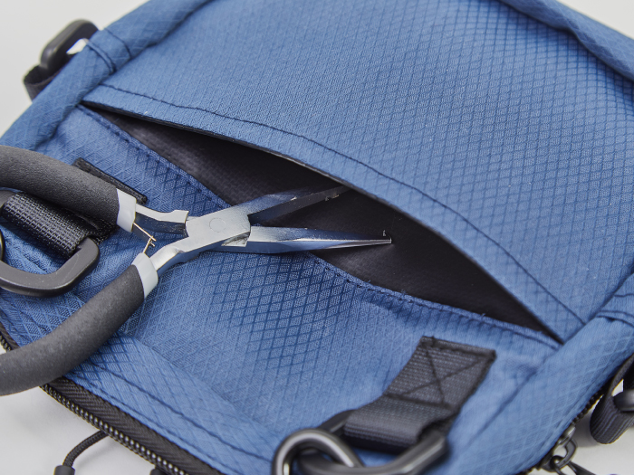 ●内部を、PUコートで保護した背面ポケットは、プライヤー、ハサミ等の収納可。