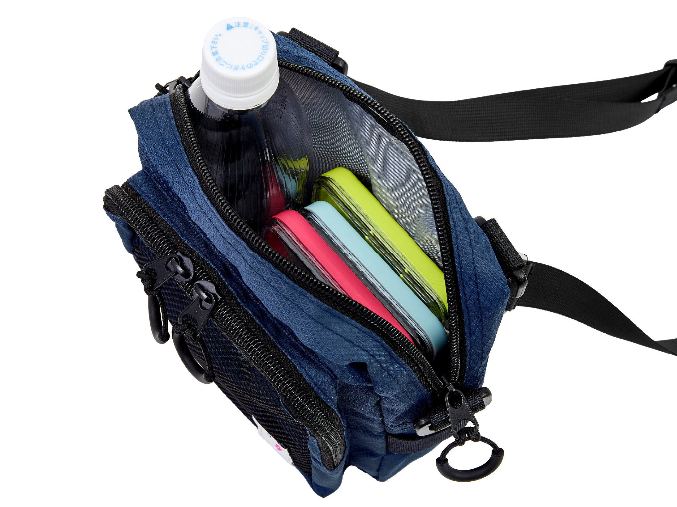 ●メインポケット内に宵姫スリムボックスが3個と600mlペットボトルが収納可。(キャップ部は、バッグよりはみ出ます。)