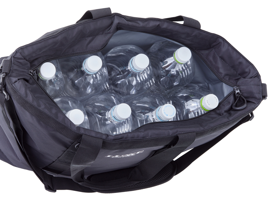 50cmワイドジッパーを採用。5mmの断熱材は中身を衝撃から守り、保冷剤や氷との併用で、簡易保冷バッグとしても。
