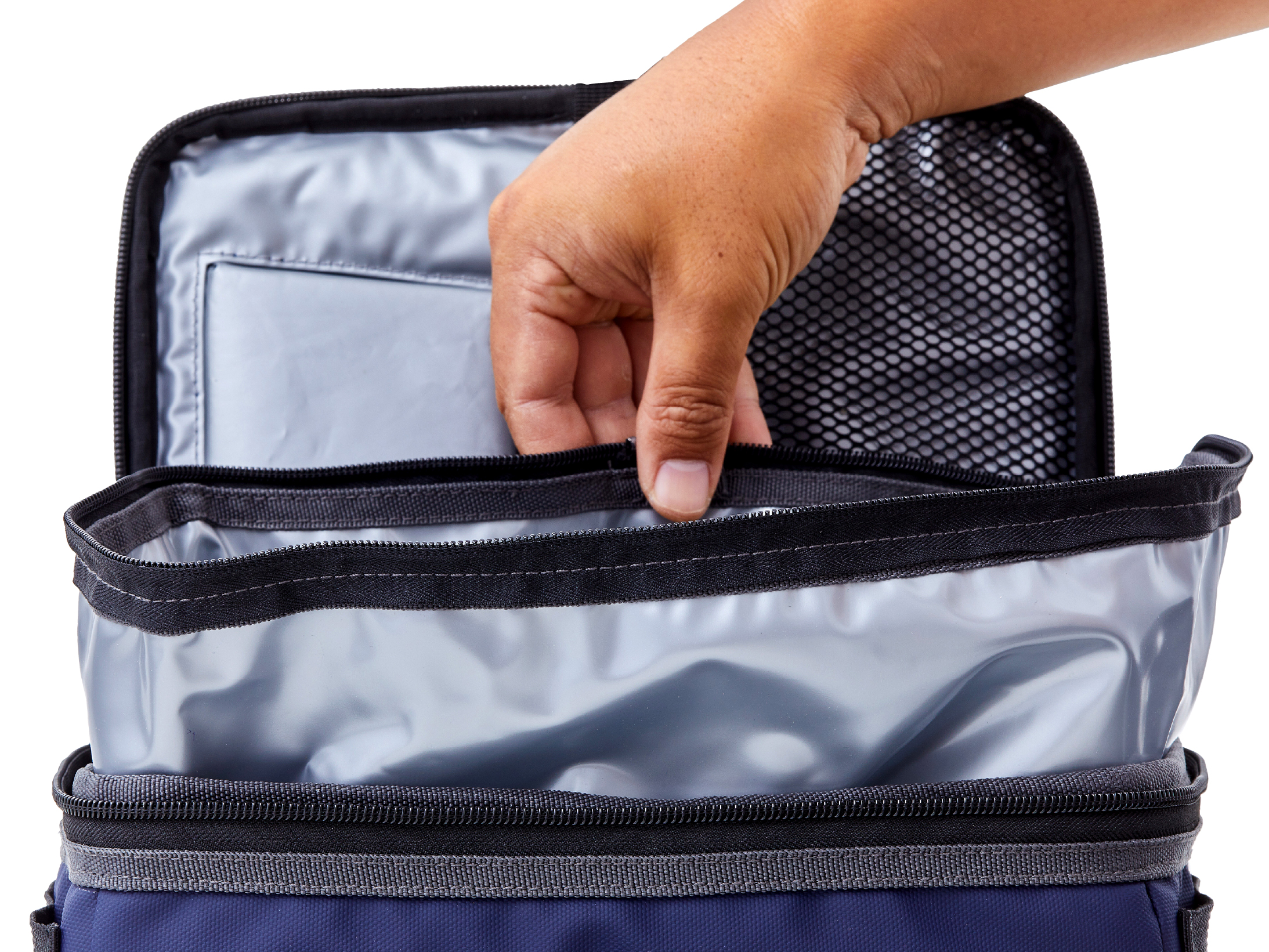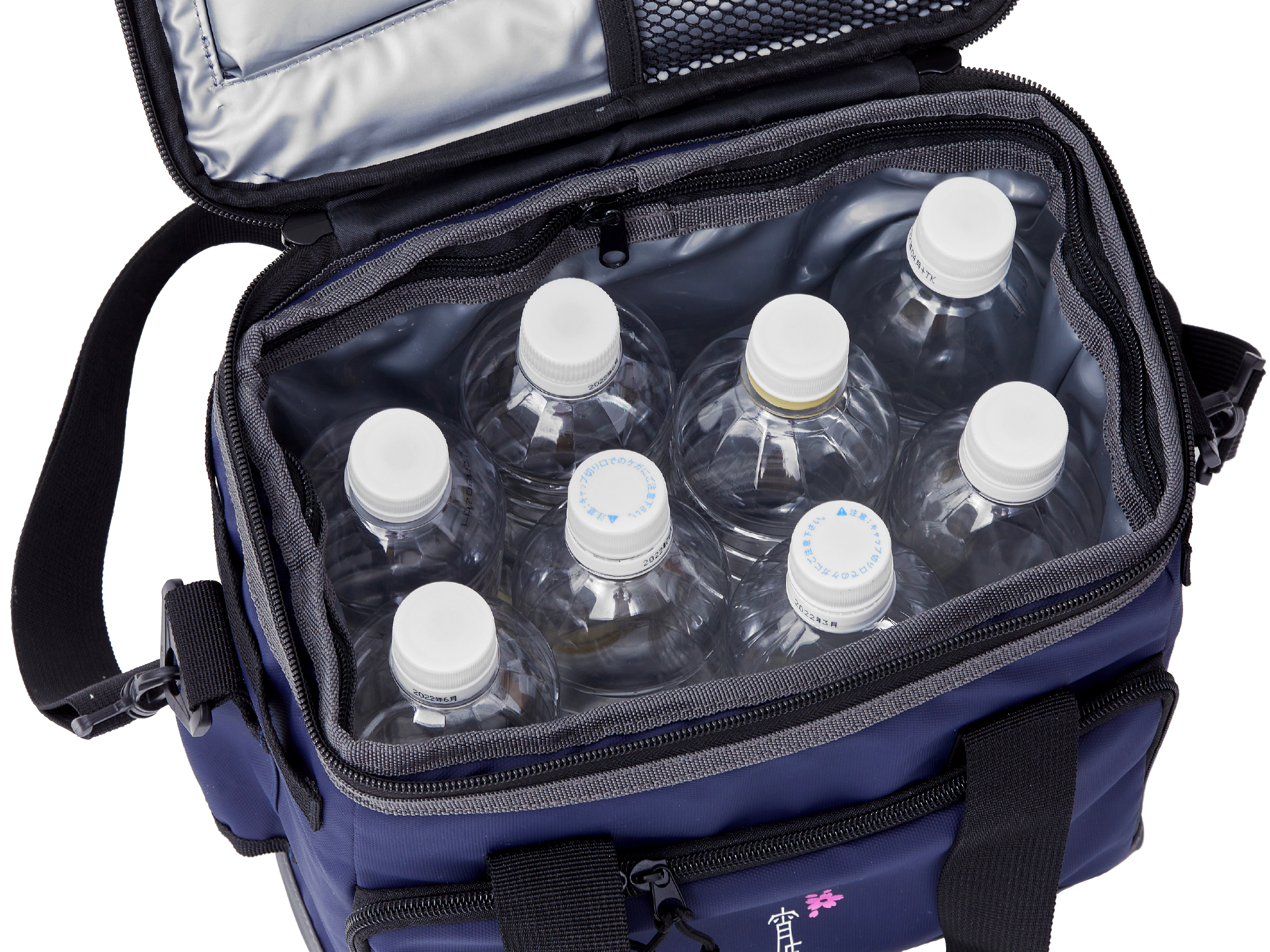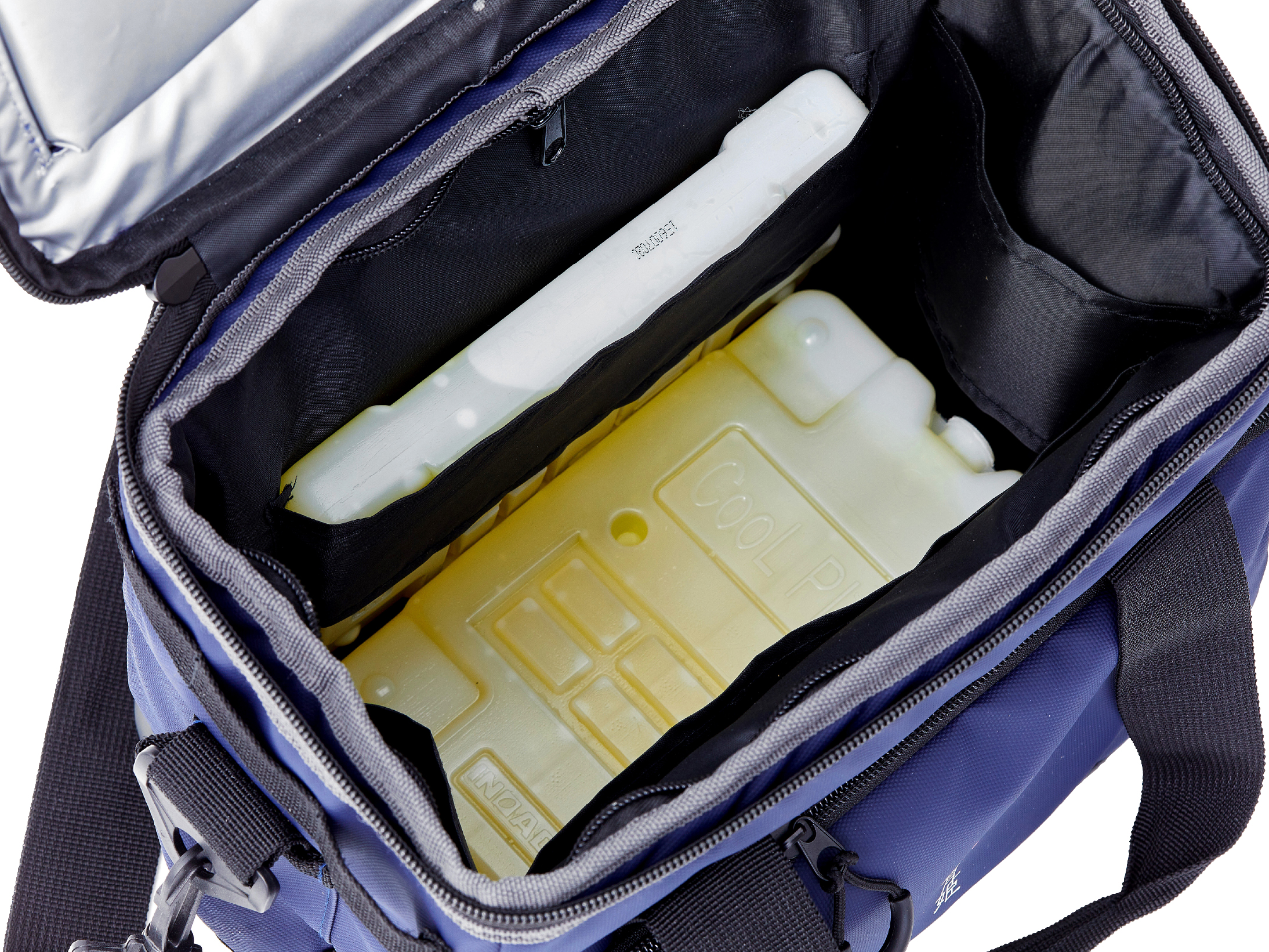 保冷剤を固定できるストラップ付。
