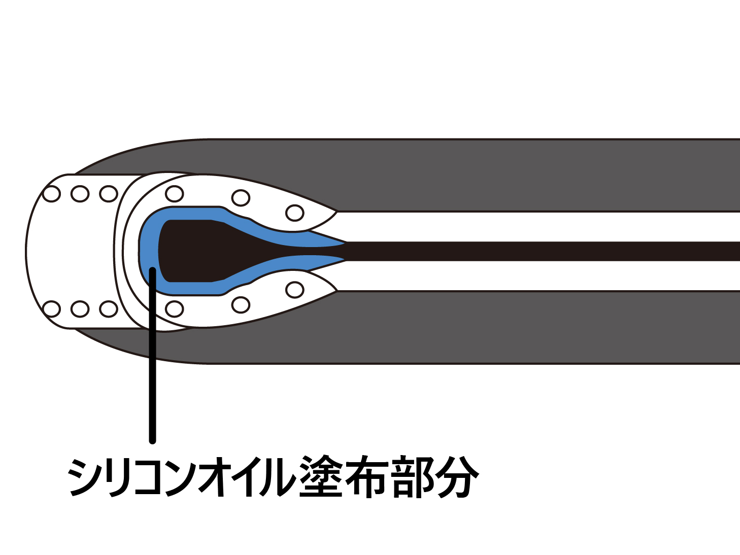 付属のシリコンオイルをイラストの青い部分(ファスナー)に少量塗布してください。