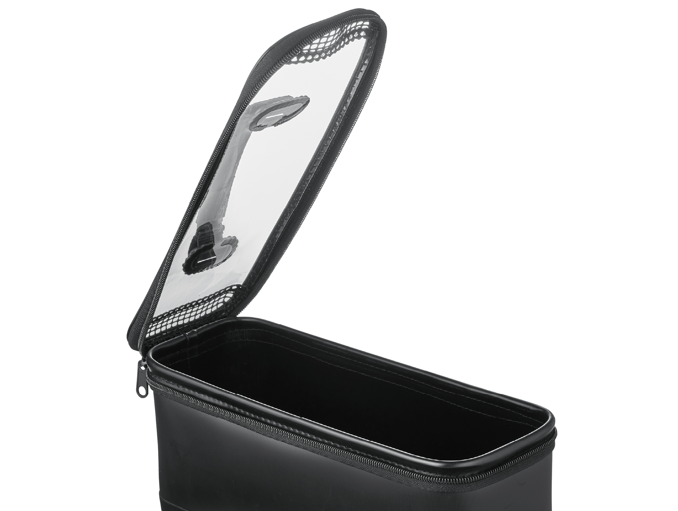 中に入れたものを確認しやすいよう、上蓋はクリア素材を採用。