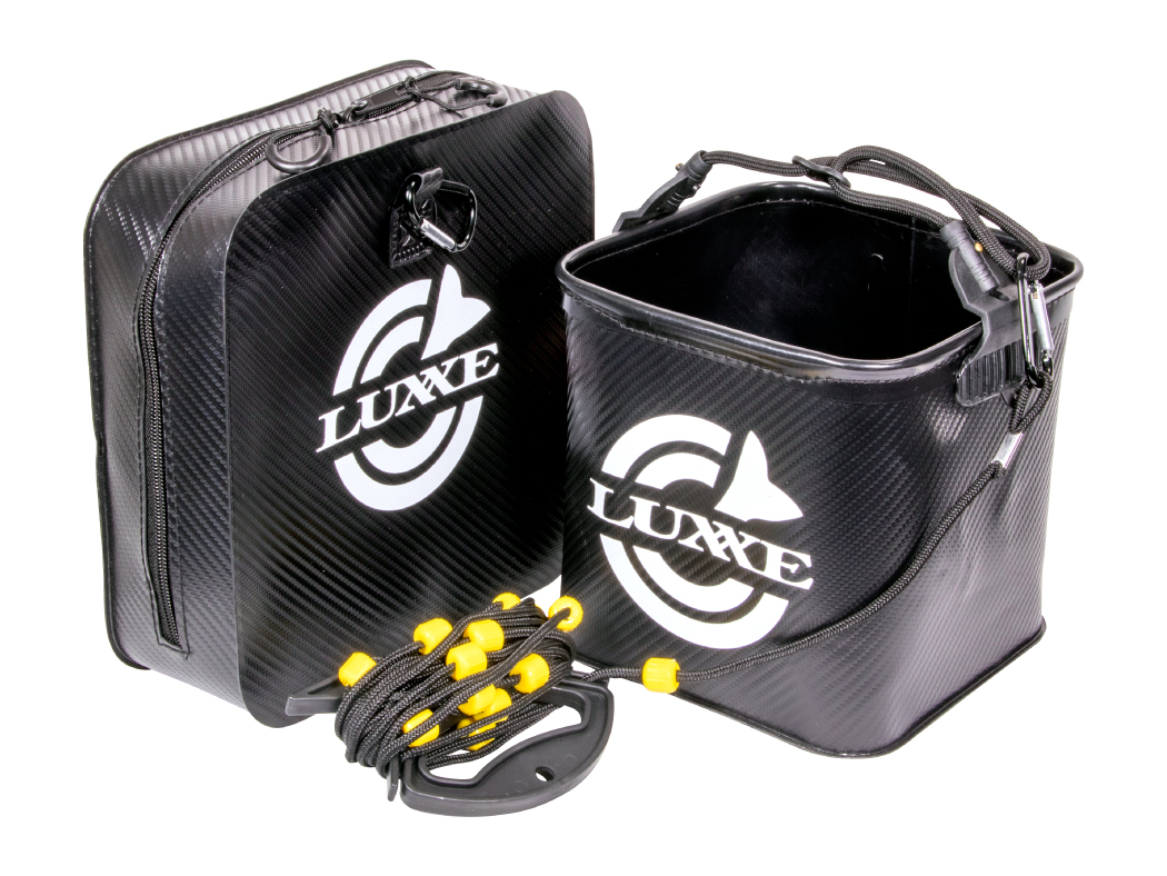 ●コンパクトな活かし水汲みバケツ(収納バッグ付)。折り畳んで専用バッグに収まります。