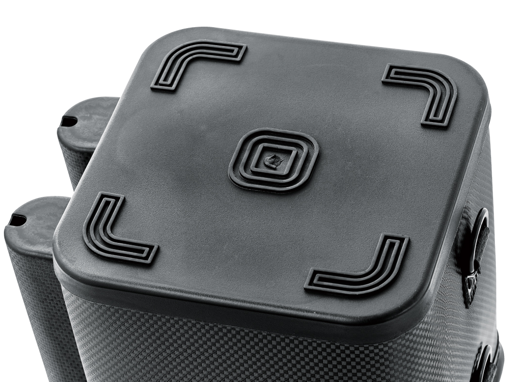 ●側面中央の上下にD環を2個装備し、下部は乾燥時の引っ掛け用として 。