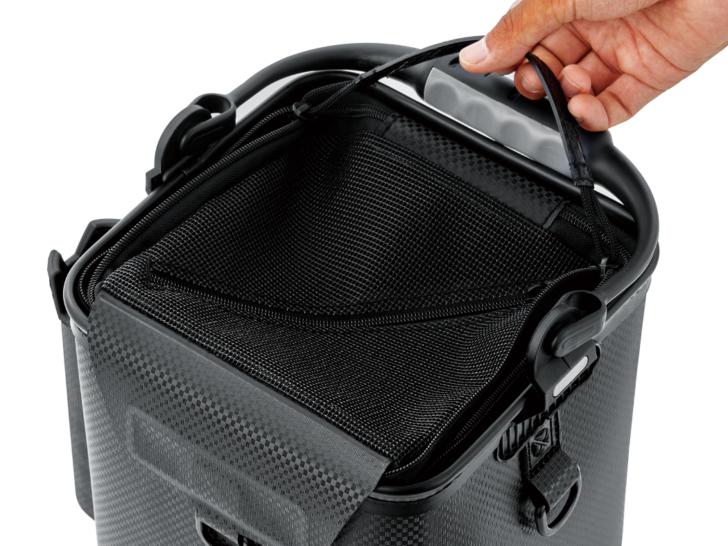 ●片手で開閉可能なダブルファスナー仕様のメッシュ蓋。
