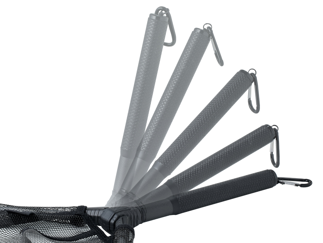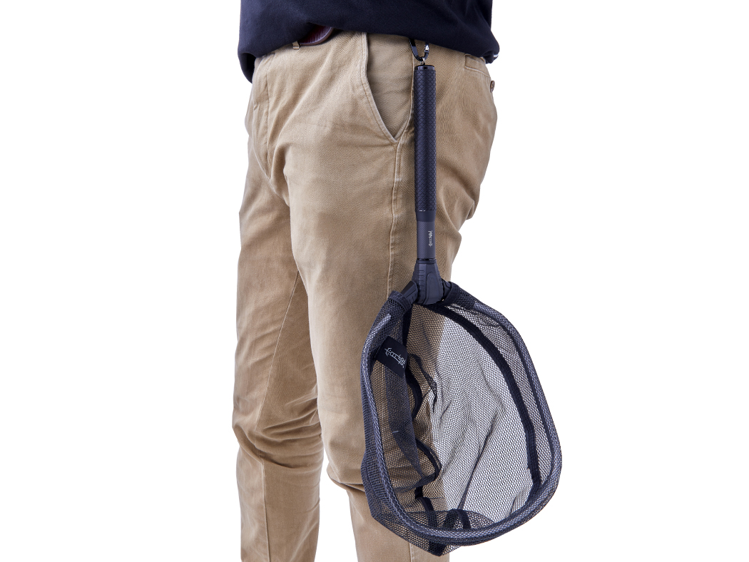 ●ハンドル内に適度な硬さのシリコンラバーコードを内蔵し、ベルトループ等に取付けたまま伸ばせ、魚を取り込み可能。