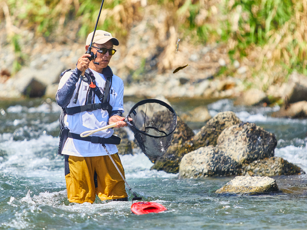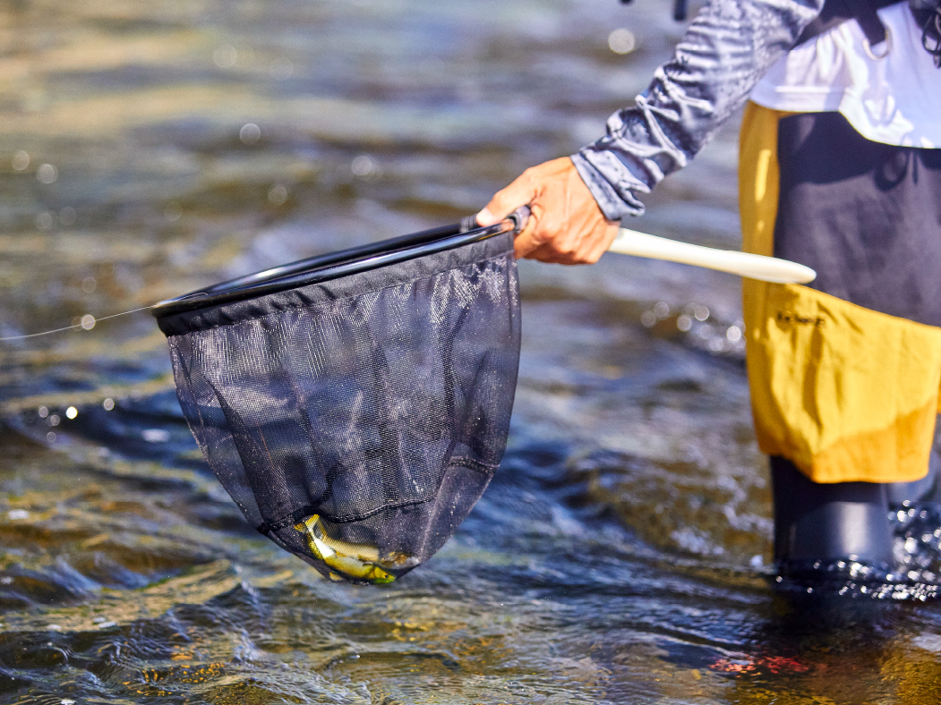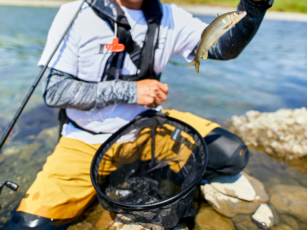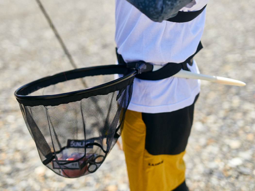 アユルアーの際に必須のアイテムとなるランディングネット。アユルアーに適したサイズと形状にデザイン。友釣りへの流用も可能。
