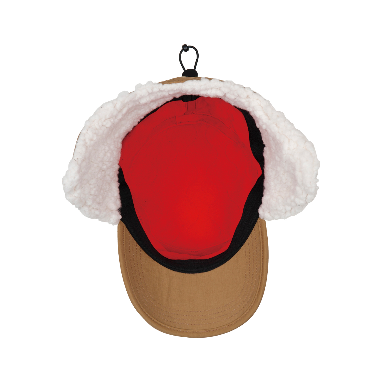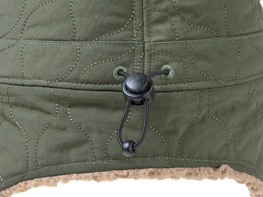 ●フラップの裏地には良質なボアを採用しており、寒い時には耳当てとして使用可能。
