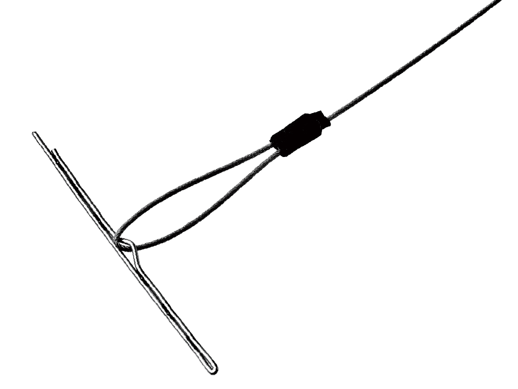 魚の下顎の薄皮部分にワイヤー通しを口の内側から外側に向けて貫通させます。貫通したらワイヤーに対して垂直にすると、下顎外側に引っ掛かり止まります。念のため、ストリンガーを引っ張っても抜けないことを確認し、魚を水に戻します。