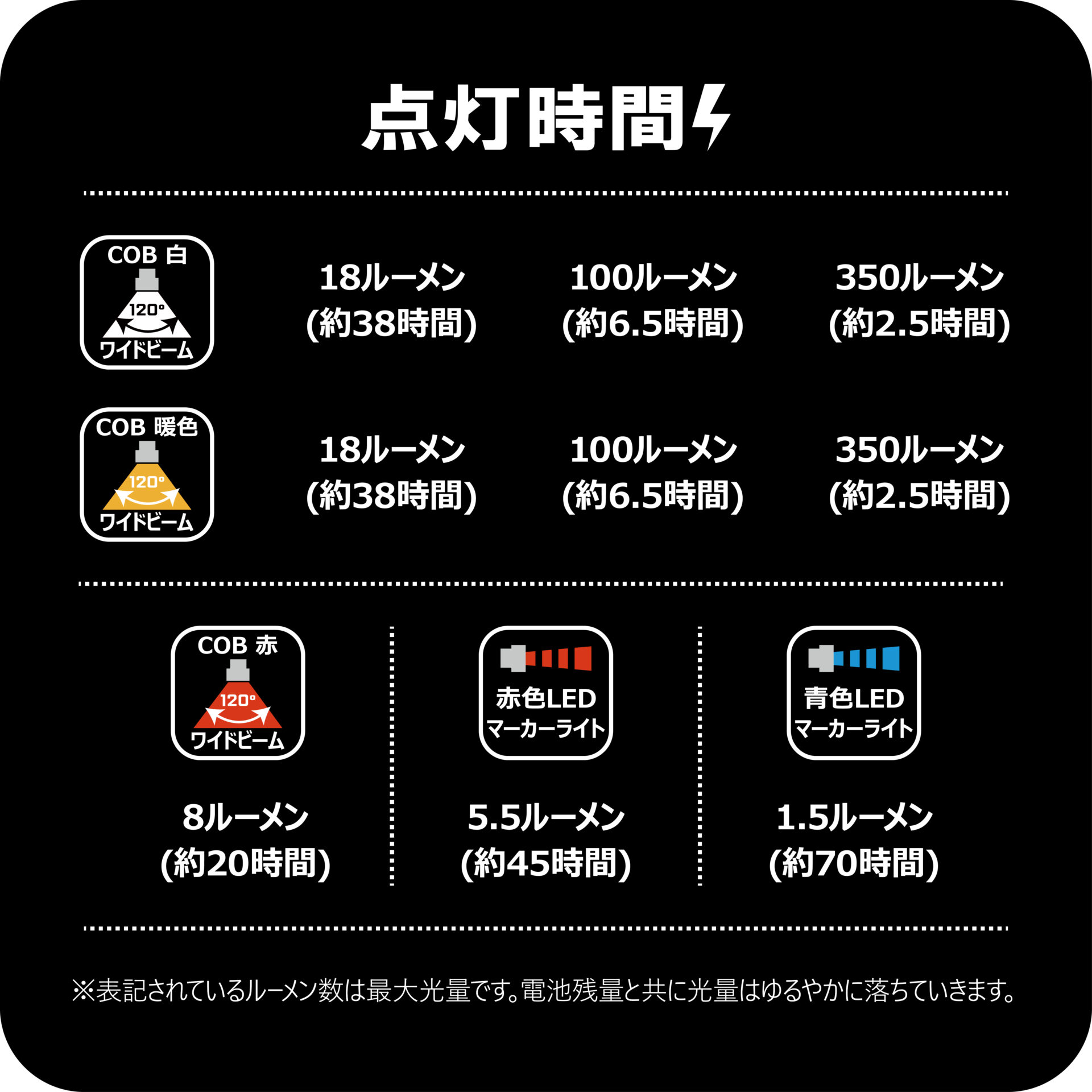 ●メインの広角ライトは、ハッキリとした白と、目に優しい暖色の2色。
