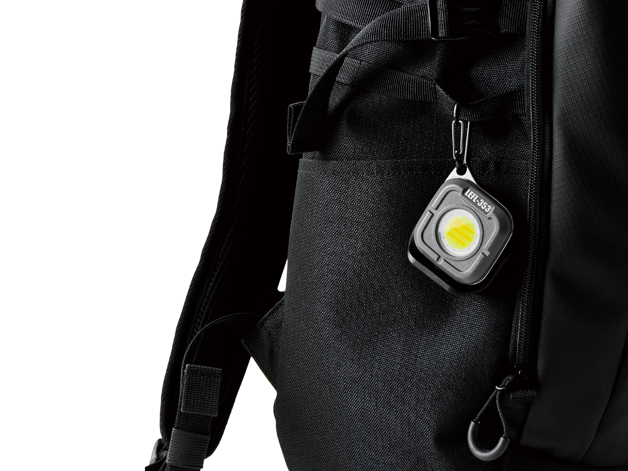 コンパクトで多彩なライトを完備、カラビナ付でバッグ等に取付け可能
