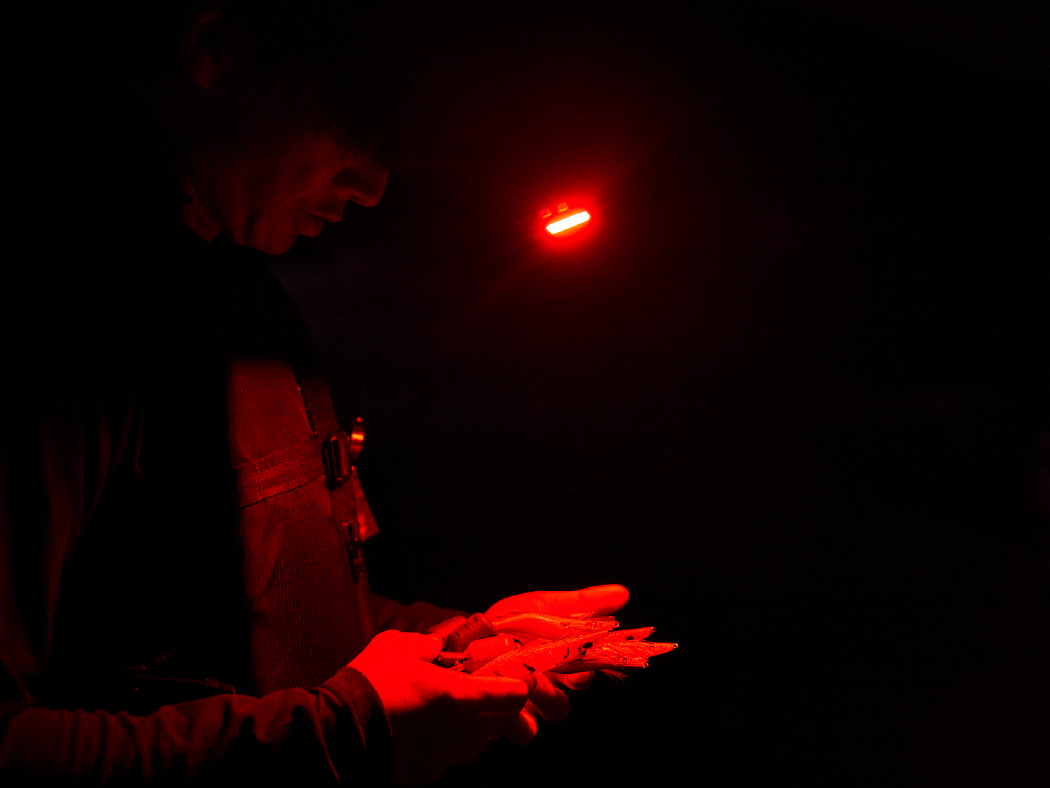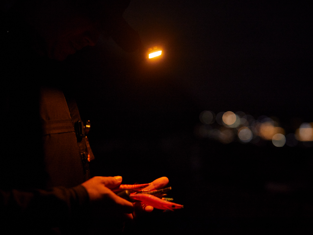 ●赤色ライトは、目に優しく周りにも配慮でき、魚から警戒されにくい。