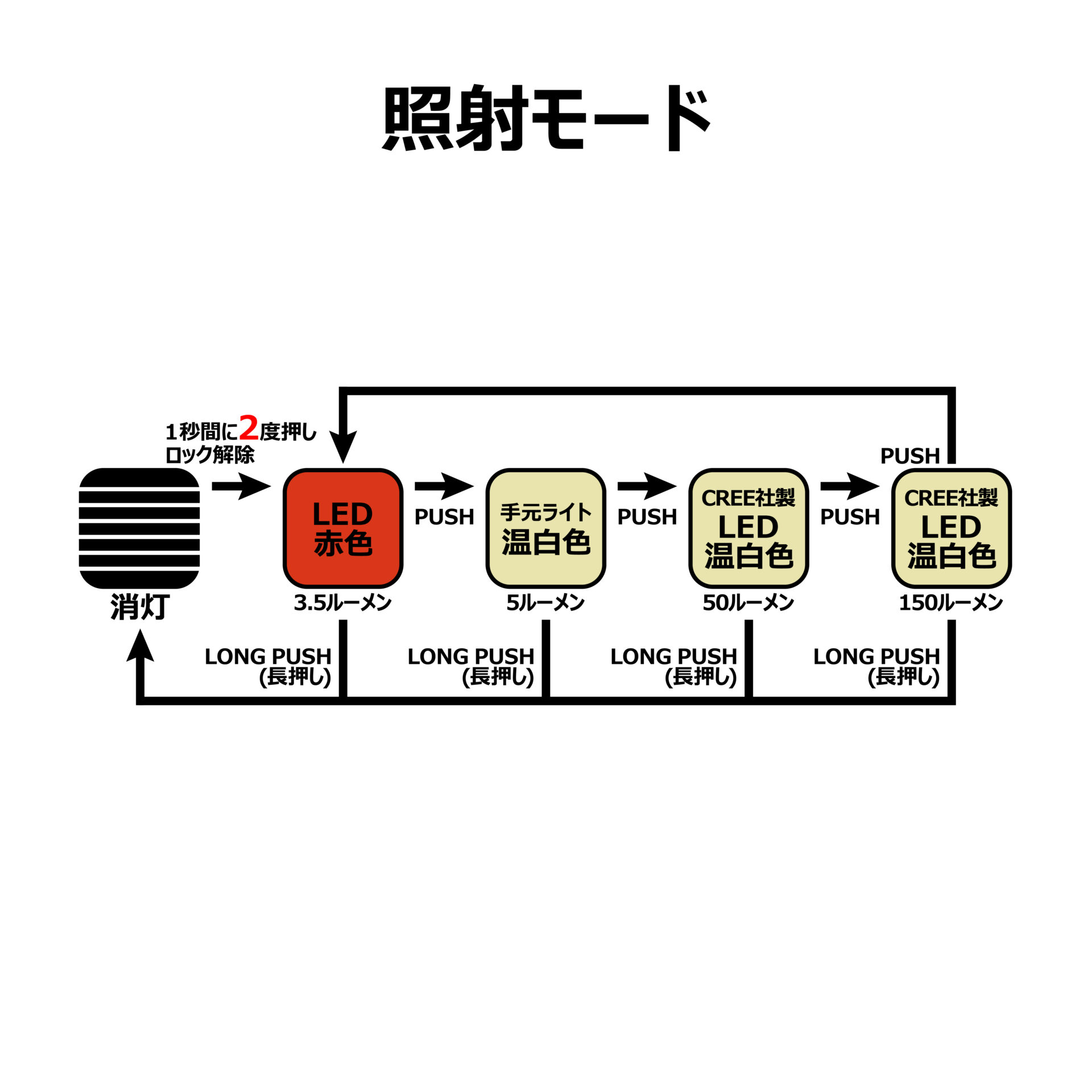 ●あらゆる点灯時にて、0.5秒長押しするだけで1発消灯。