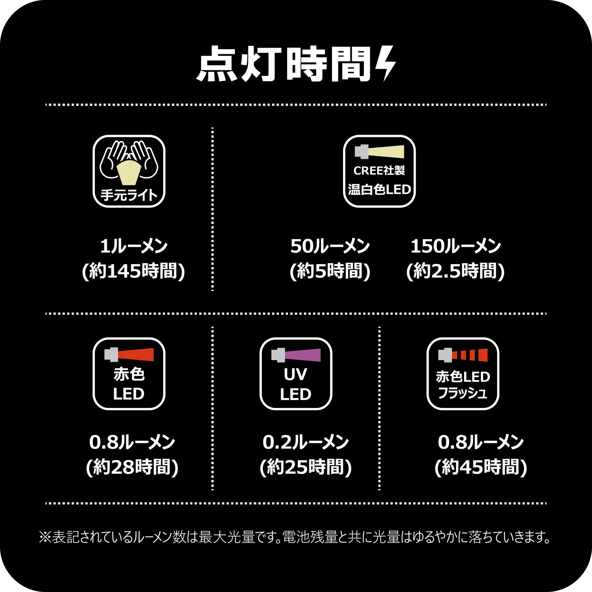 ●サブライトは、UV、赤点灯そして赤点滅(毎2秒のスローテンポ)。