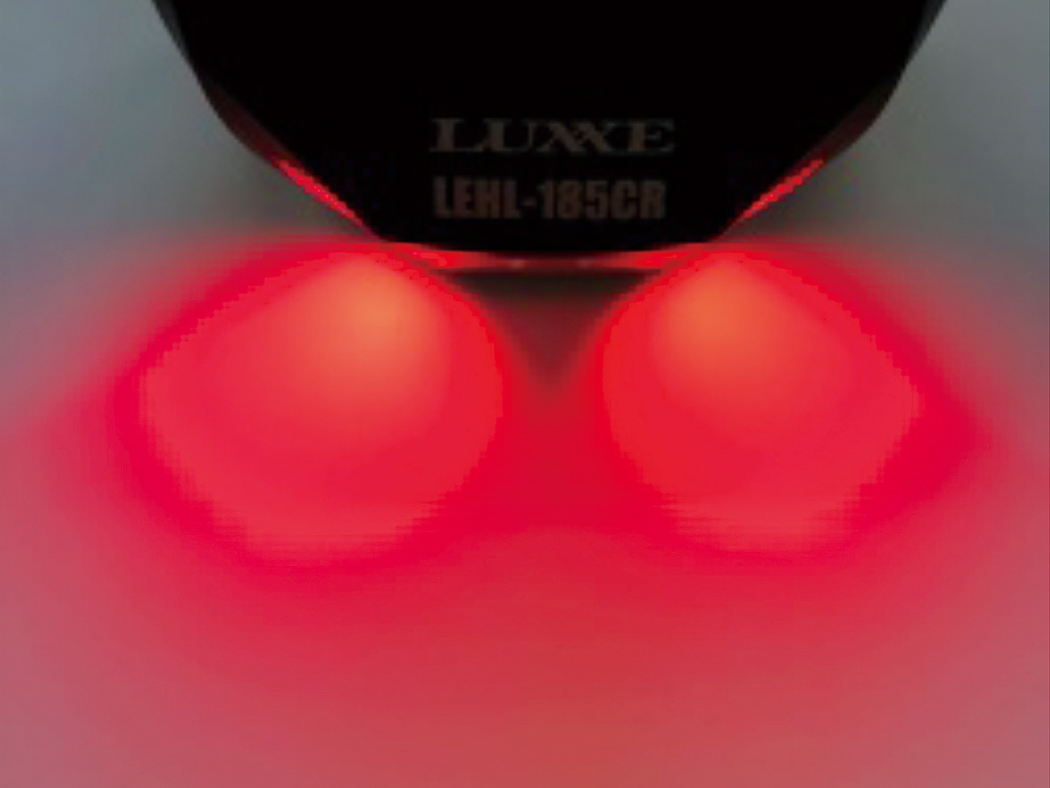 ●赤色広角ビームは連続と点滅の2モード。