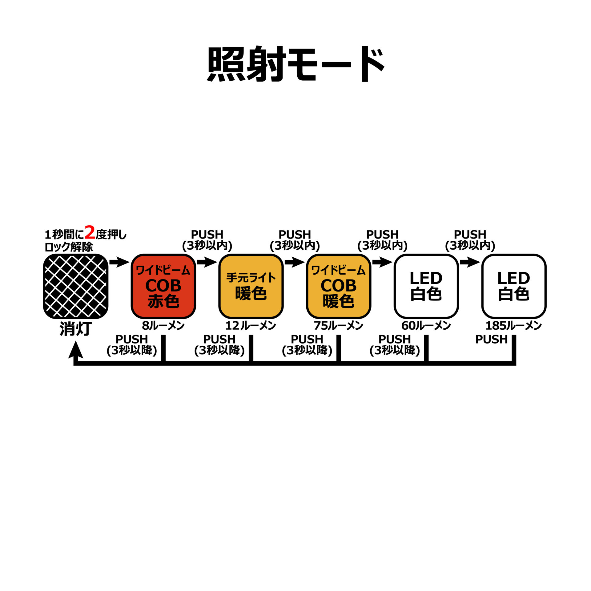●点灯は1秒間に2度押し。