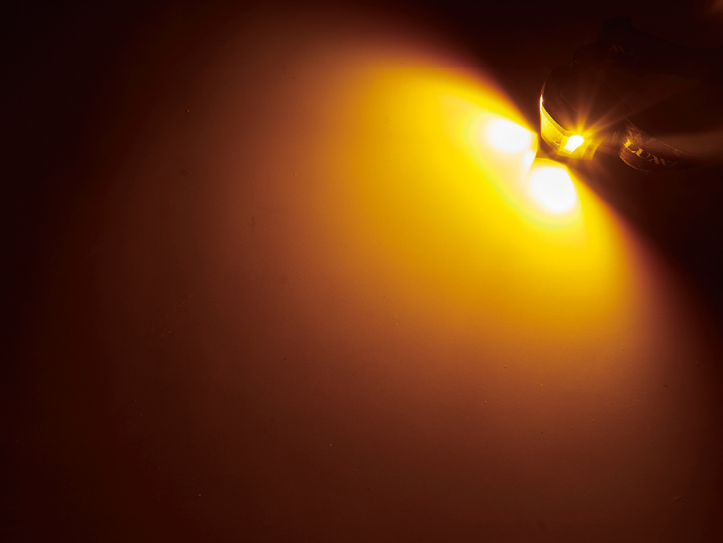 ●暖色ライト12ルーメンは、手元周りだけを照らしルアー交換等に便利。