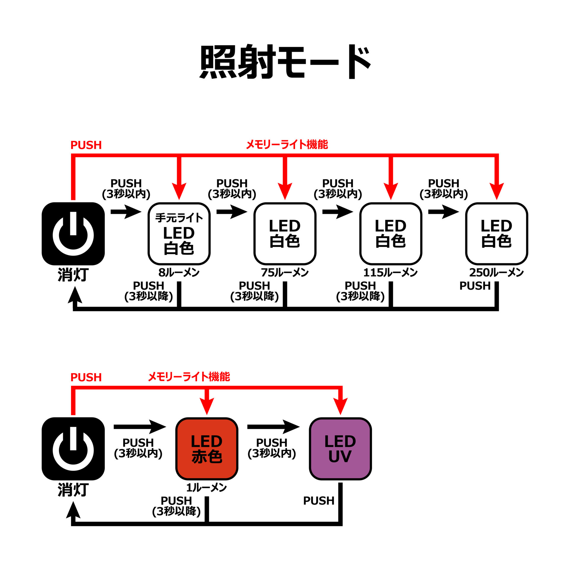 ●クイックオフ機能(3秒以降に1回押せばオフ)。