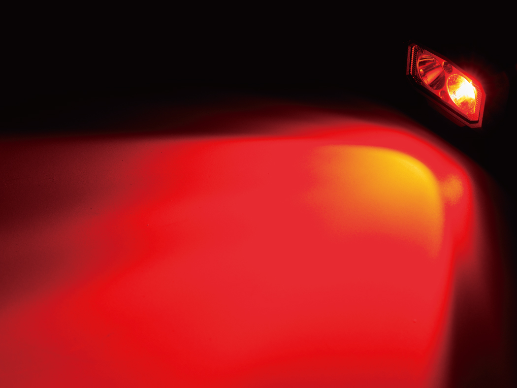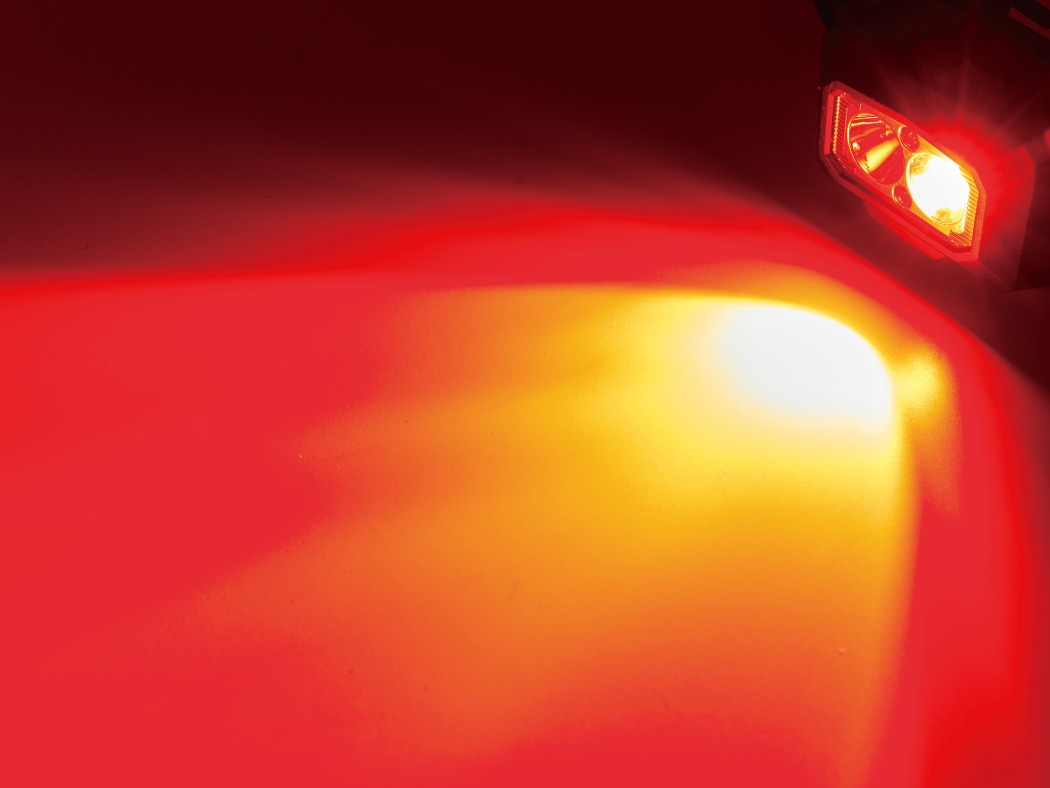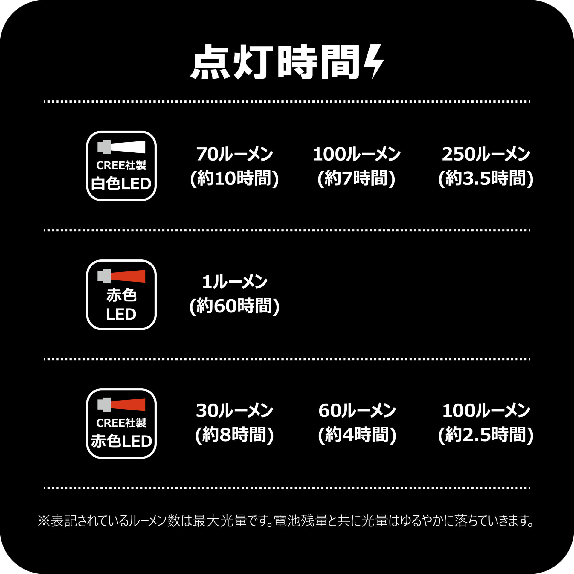 赤色灯が4段階調整可能なヘッドライトの乾電池仕様モデル!