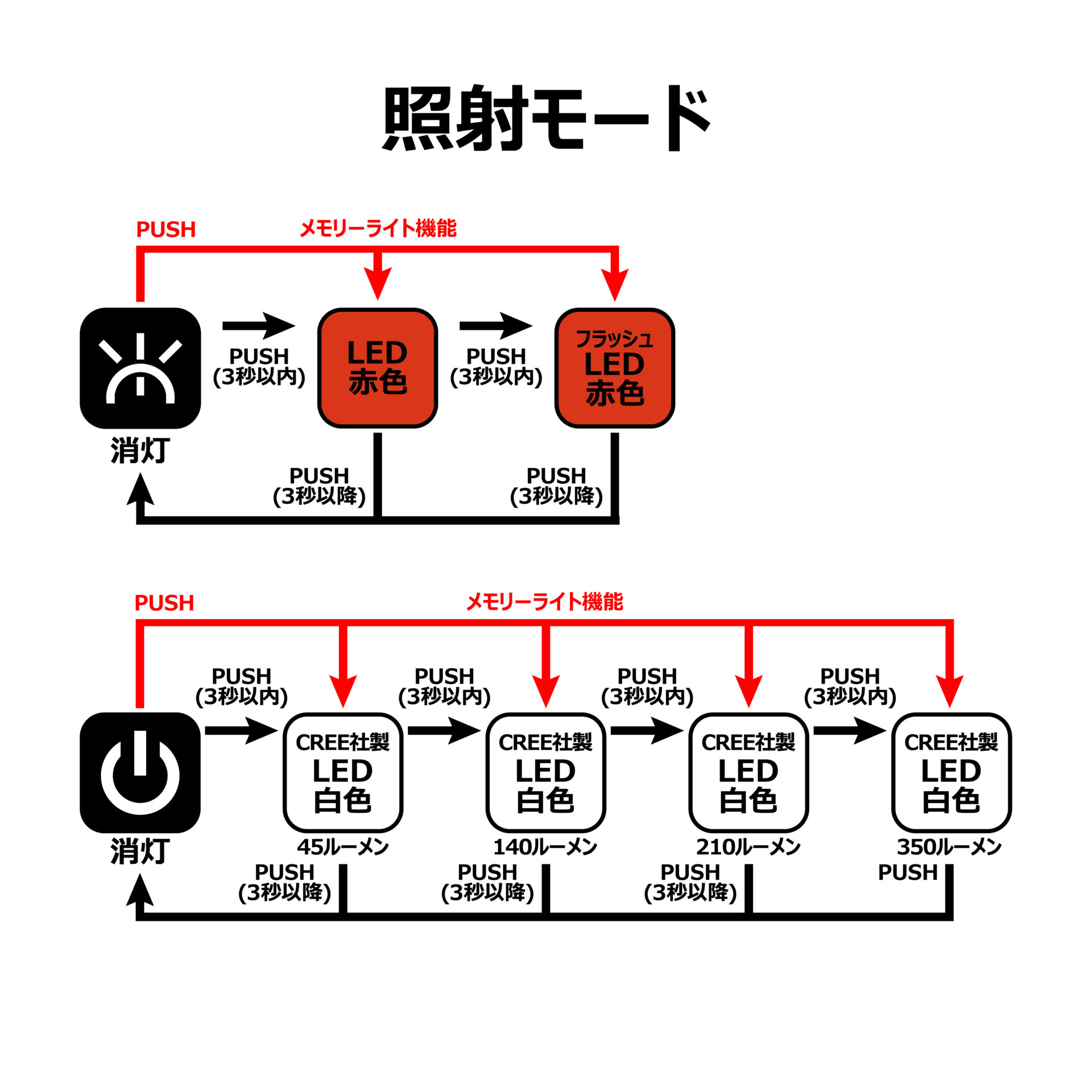 ●前回使用時最後の点灯パターンから始まる便利なメモリー機能付。