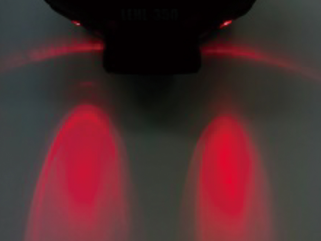 ●手元から遠くまでをカバーする白色フォーカス調整式ビーム、手元を柔らかく照らす赤色のスポットビーム。