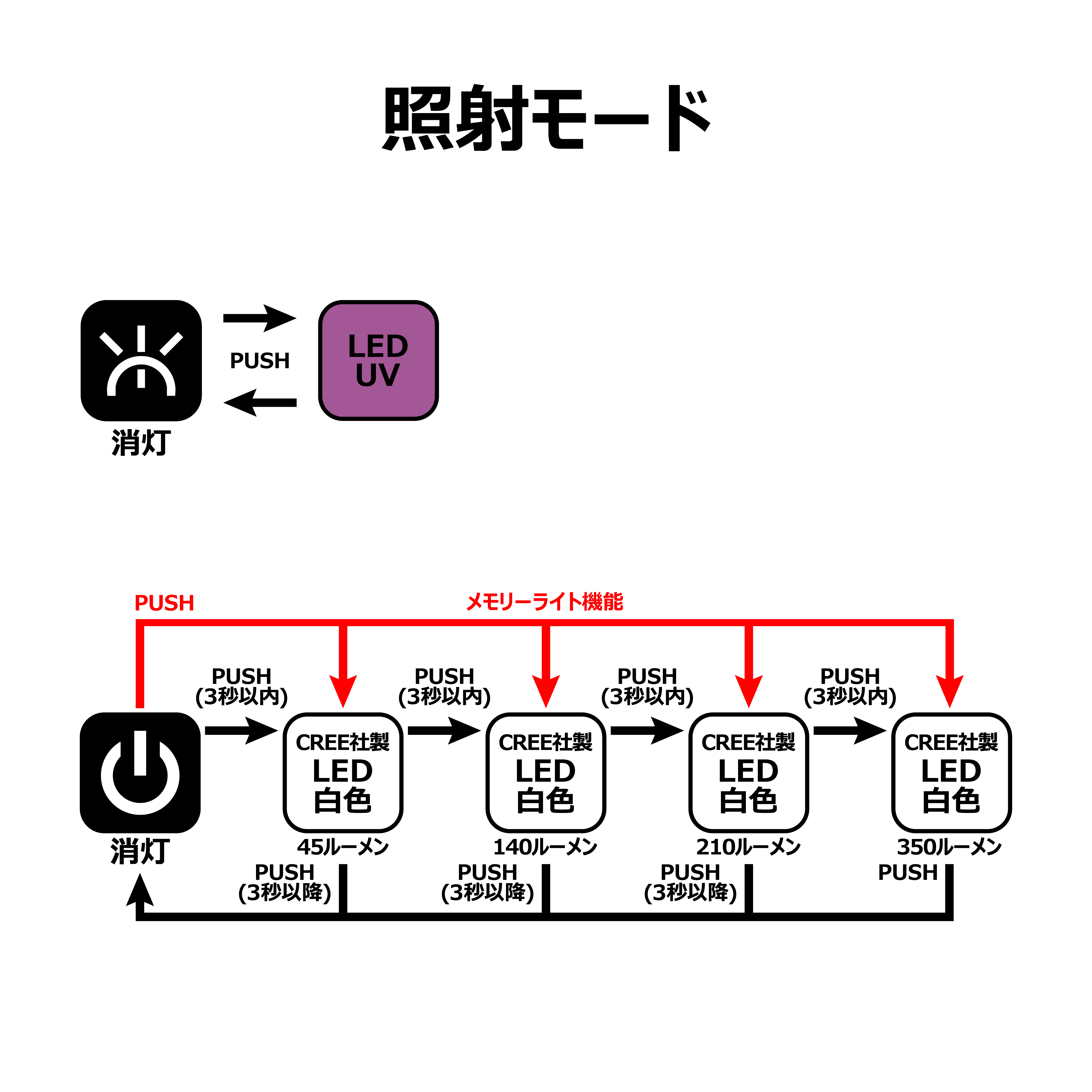 ●メモリーライト機能(前回使用のライトから点灯)。