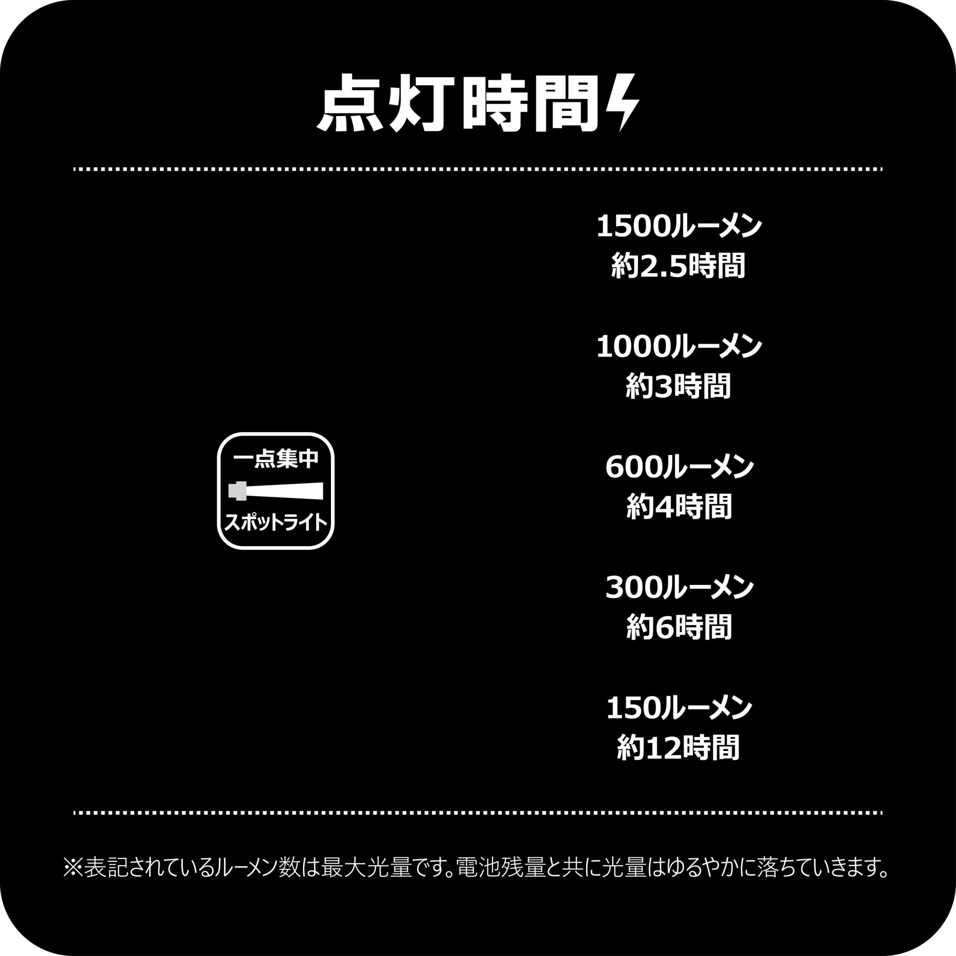 最大光量:1500ルーメン