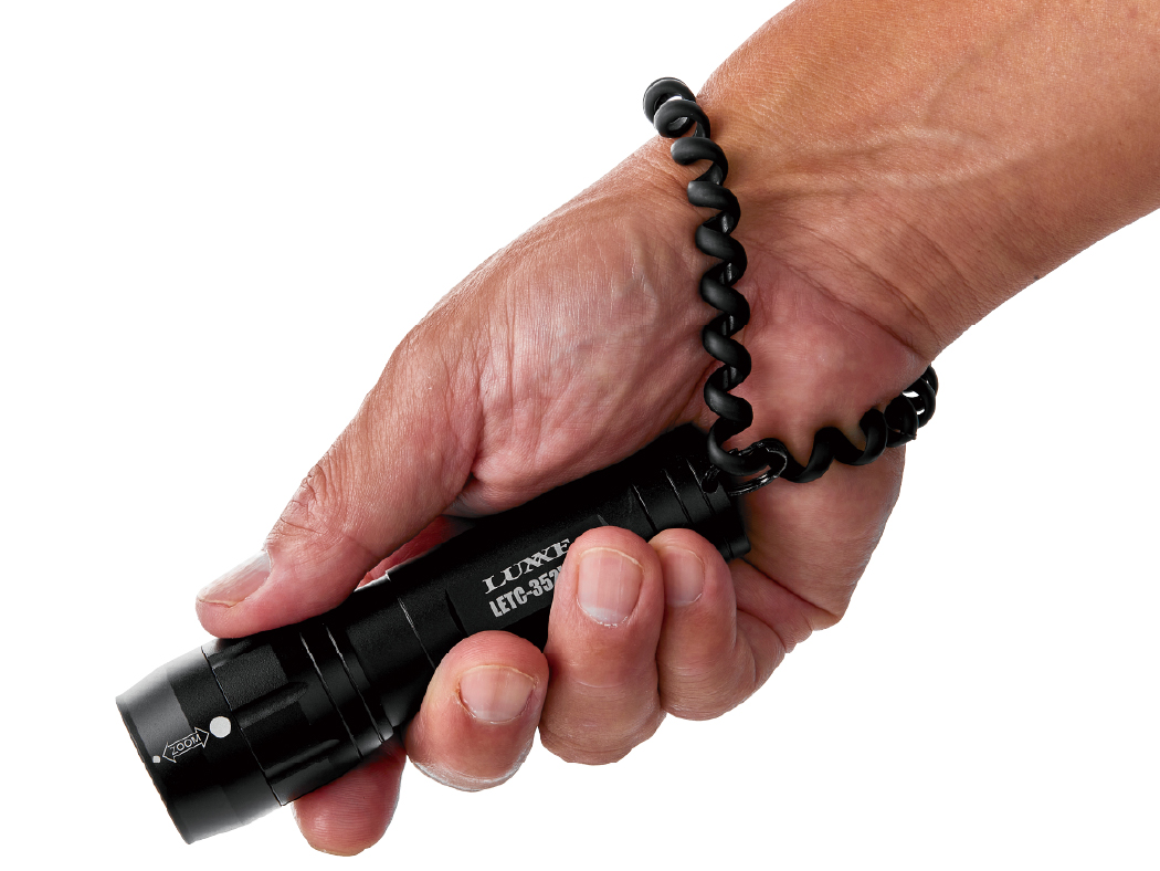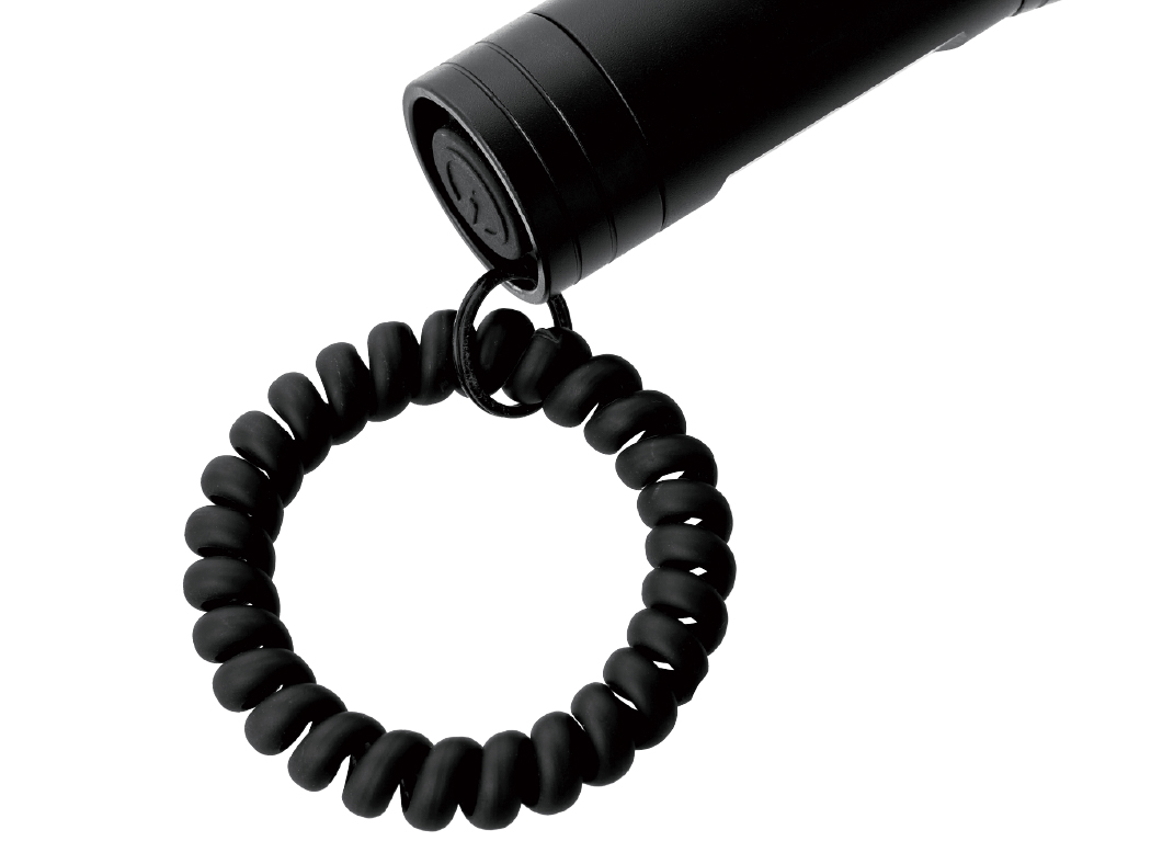 ●持ち歩く際に手首に巻くと落下防止になるスパイラルバンド付。