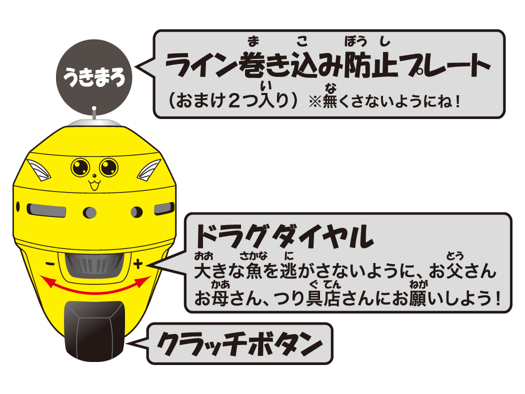うきまろリールは、ボタンを押して放すだけで簡単にキャストができるよ。