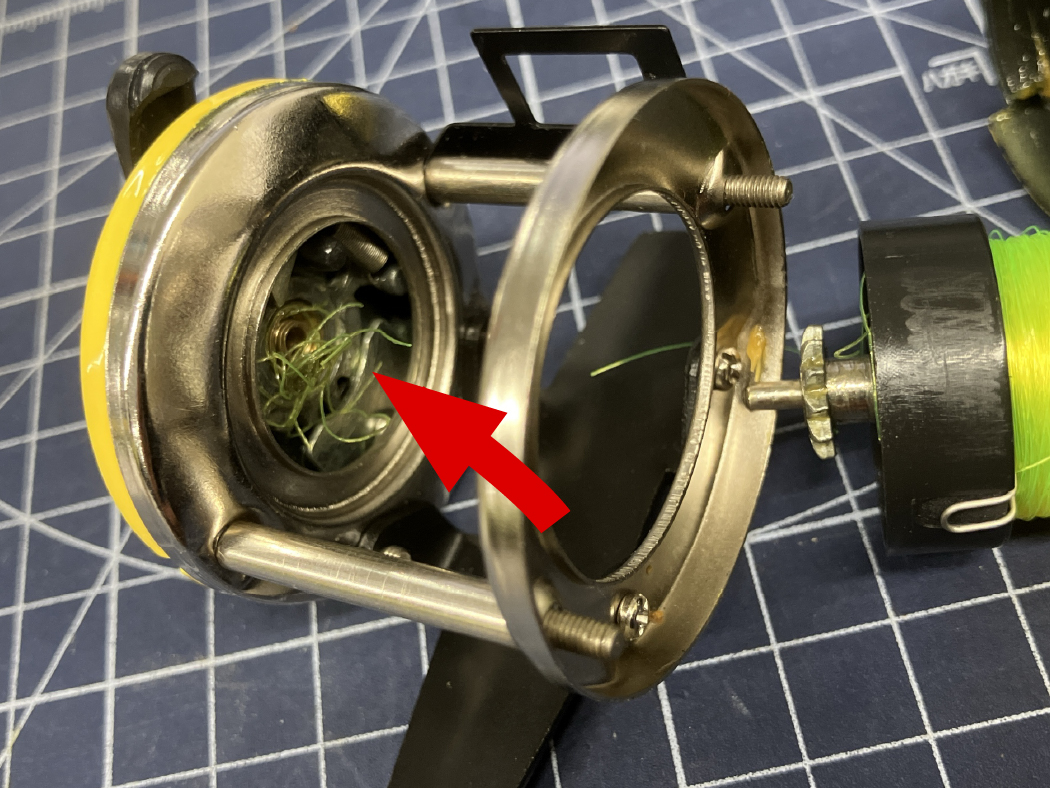 5.ボディにスプール、ハンドル付プレートの順に入れる。