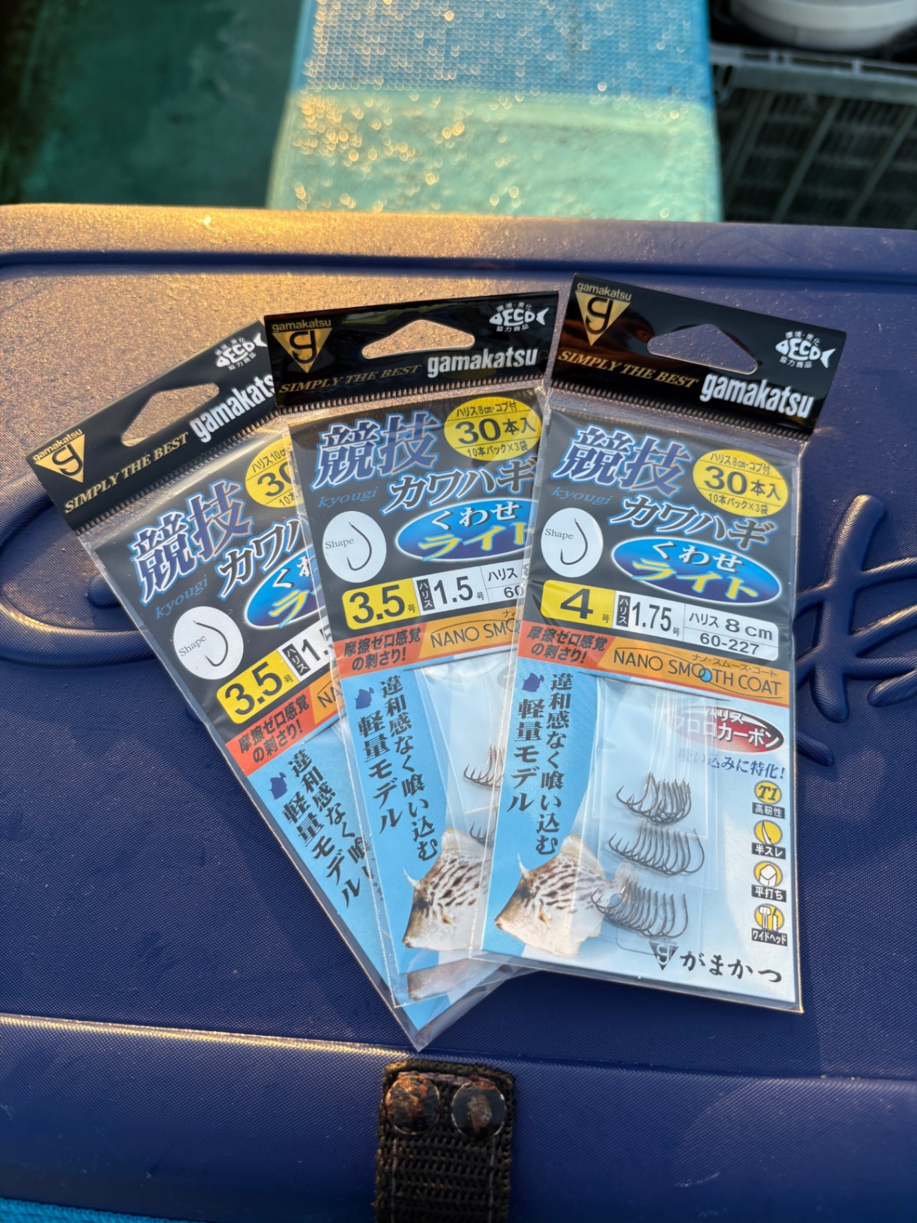 加えて、衝撃的だったのが『競技カワハギ くわせライト』の吸い込みの良さ。テスト段階でもその性能は実感していましたが、市販化されたハリとハリスの号数。長さのバランスがブラッシュアップされていて、小型のカワハギでも違和感なくハリごと吸い込んでいるシーンが何度もありました。大会では小型の数釣りシーンになることも多いので、強い武器になってくれることを改めて実感した釣行となりました。