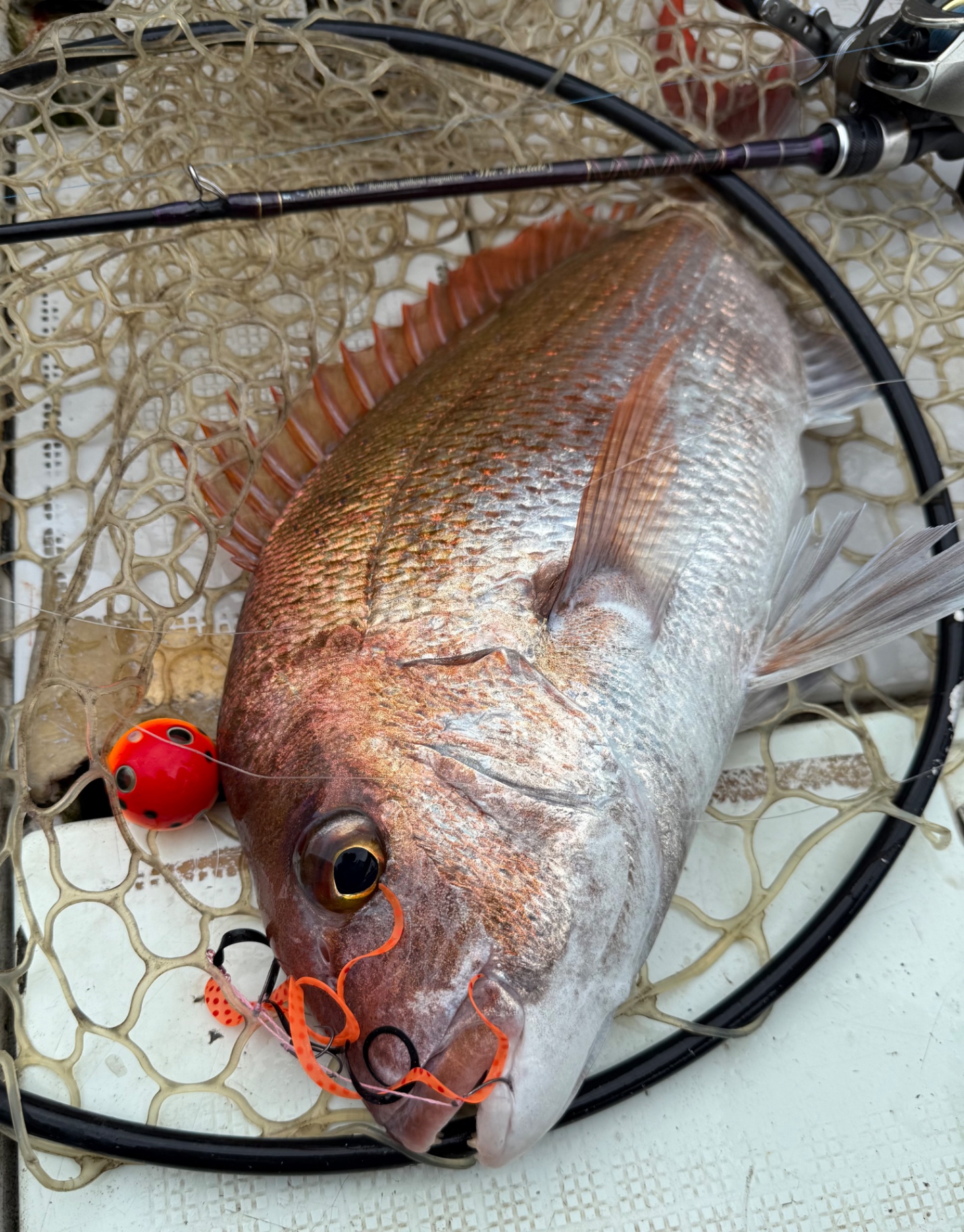 開始早々に釣れた良型マダイ