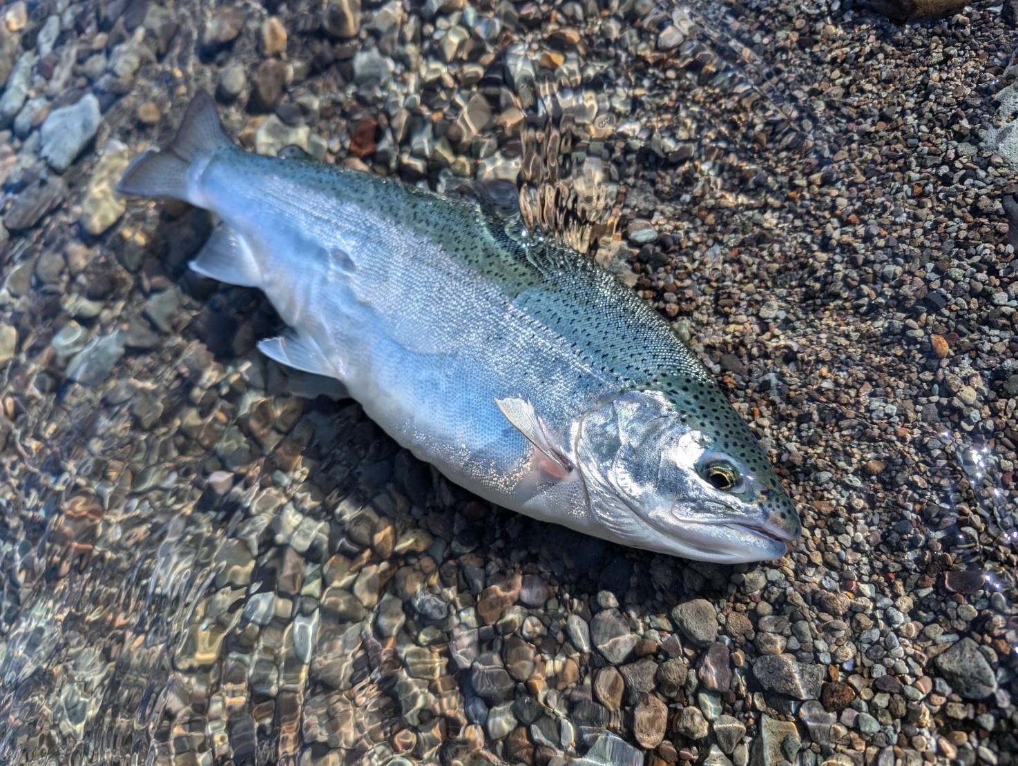 自分も十数年通って未だ3匹しか釣れた事がない自分の中では超レアなニジマスでその中でも通称プラチナと呼ばれるニジマスもいて全くレッドラインのないギンギラのニジマスである自分も今までにプラチナは一匹しか釣れた事がなく超超超レアなニジマスである。
