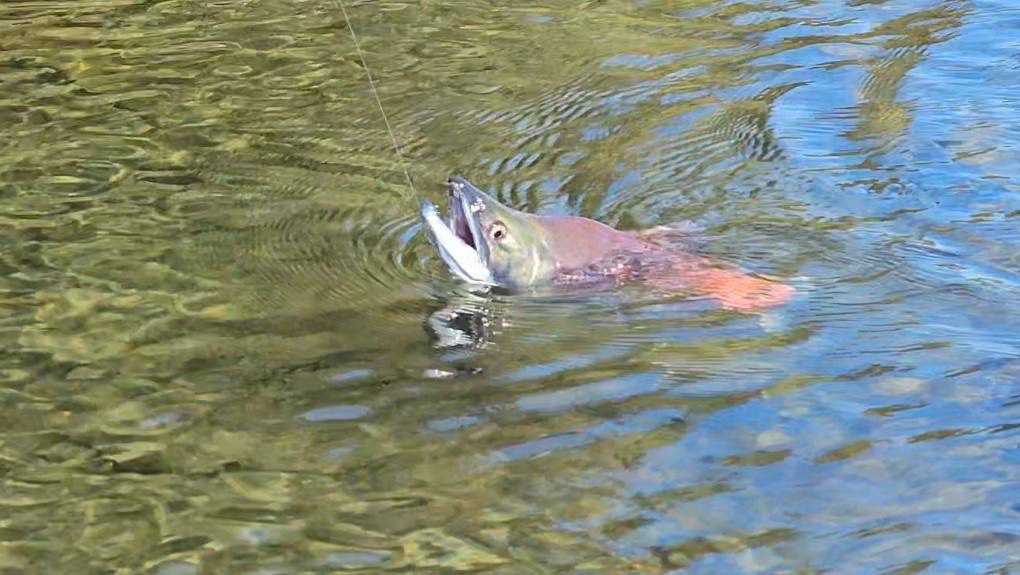 時より本命のニジマスと間違えるほどの引きをする50センチ位のウグイに遊んでもらい時間を潰した。