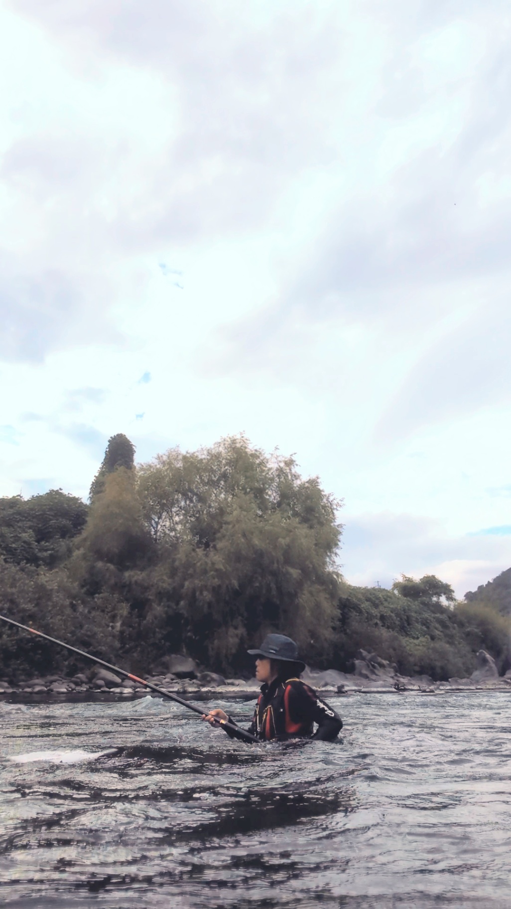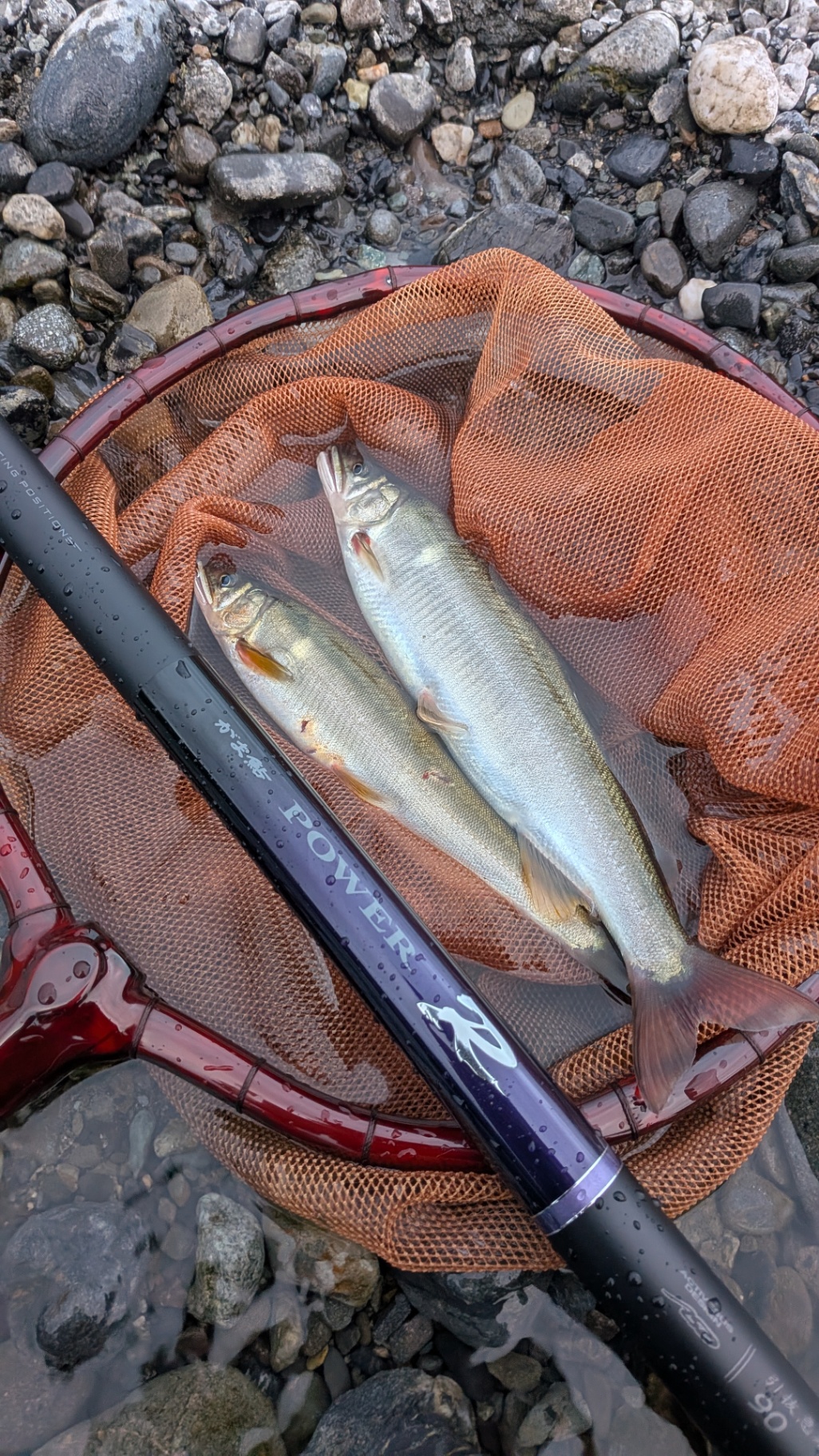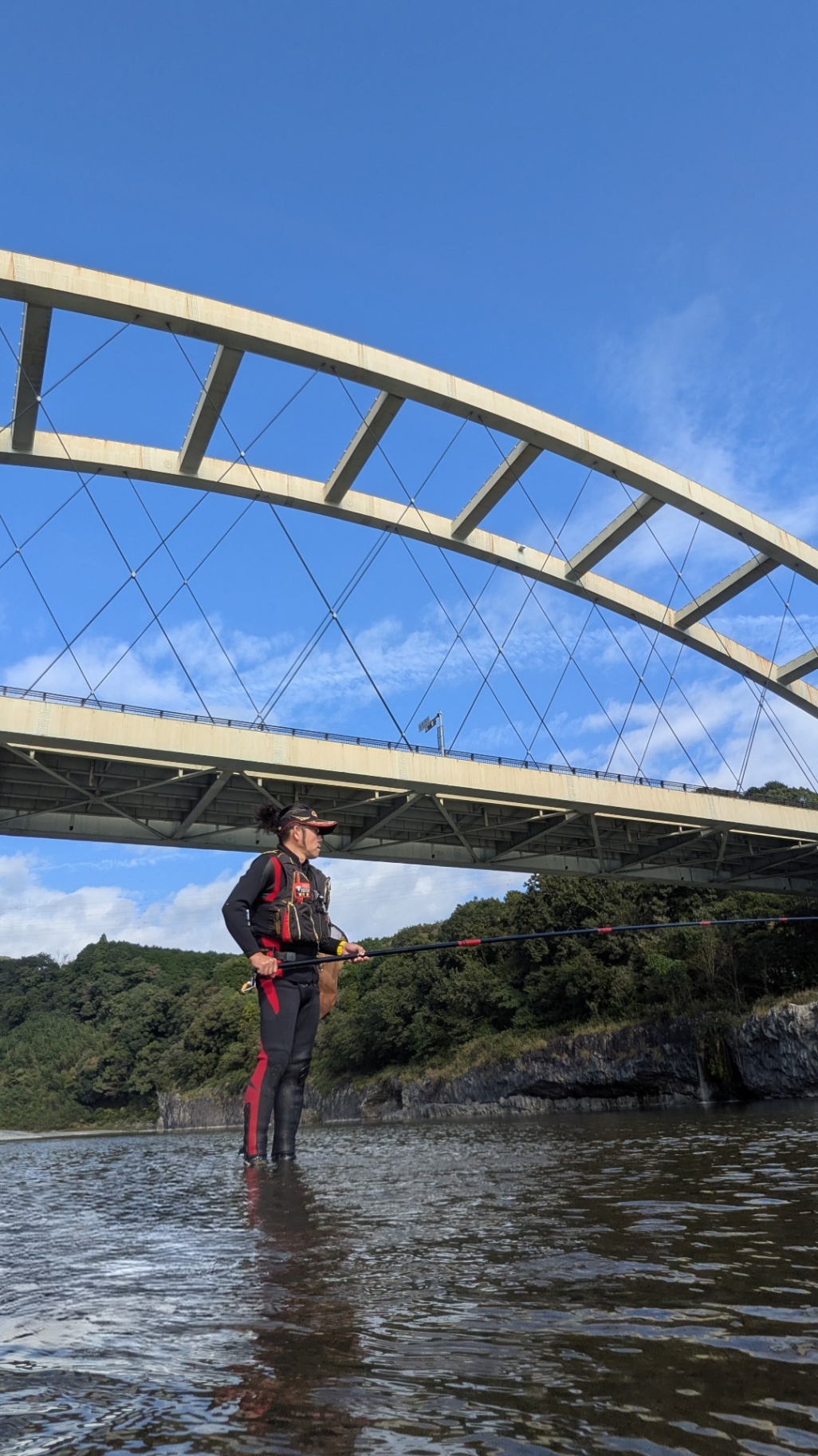 こんな大きな河川なのになんでこんなにも隣の人と近いのかってくらい…でも鮎はいるのでそこは我慢、取り敢えずオトリ確保してから大鮎狙いと思ったが、思った様に釣れずでようやく釣った鮎もヘロヘロ状態、下流に後輩がいたはずだ、オトリあるかなぁ何て甘い考えで下っていくも見当たらず…諦めてヘロヘロのオトリを優しく操作、コツっとした小さなアタリと共にPOWER Rかキレイな弧を描く!良型間違い無しなかなか芯から抜け出ずようやく抜けた時にスッと身切れで痛恨のバラシ、駄目なときの負のスパイラルにハマりだした…