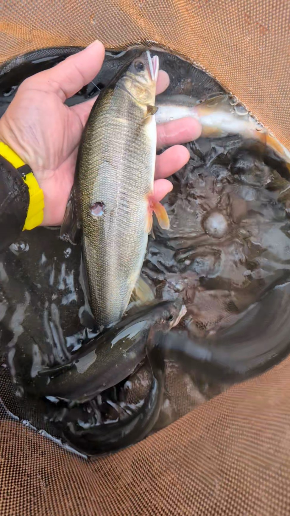 安定して釣れているところでオトリを確保と思い竿を出すと尺近い鮎がいきなり掛かりビックリ!その後オトリを数匹確保し先日大型が釣れていた場所へ下る。瀬落ちからの巻き返しのたるみが空いていたので竿を出すとやはり大型が何度か竿を絞ってくれた!