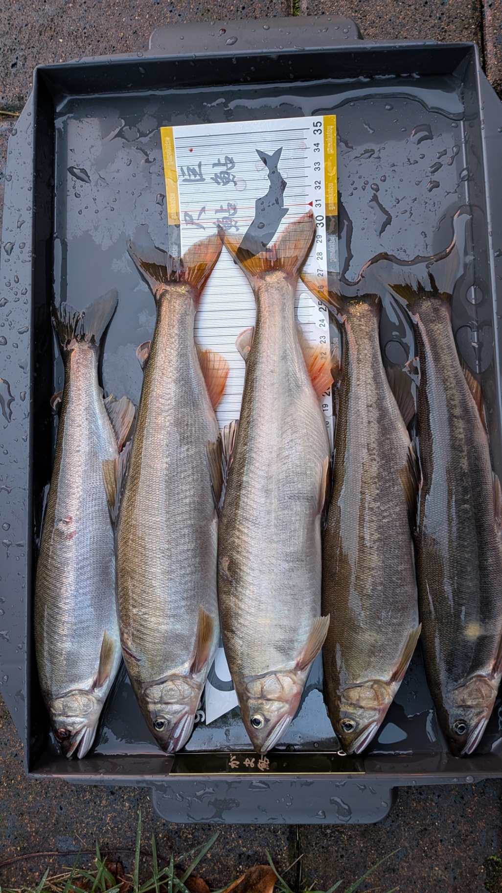 10月26日、昨夜からの雨か朝まだ降っていて富士川の様子が気になりオトリ店のSNSをチェック、増水なしなのでいつもの蓬莱橋へ、雨でなのかもう寒くてなのかいつもよりは釣り人が少ないが、まだまだ尺鮎を諦めきれない釣り人たちが竿を出していた。