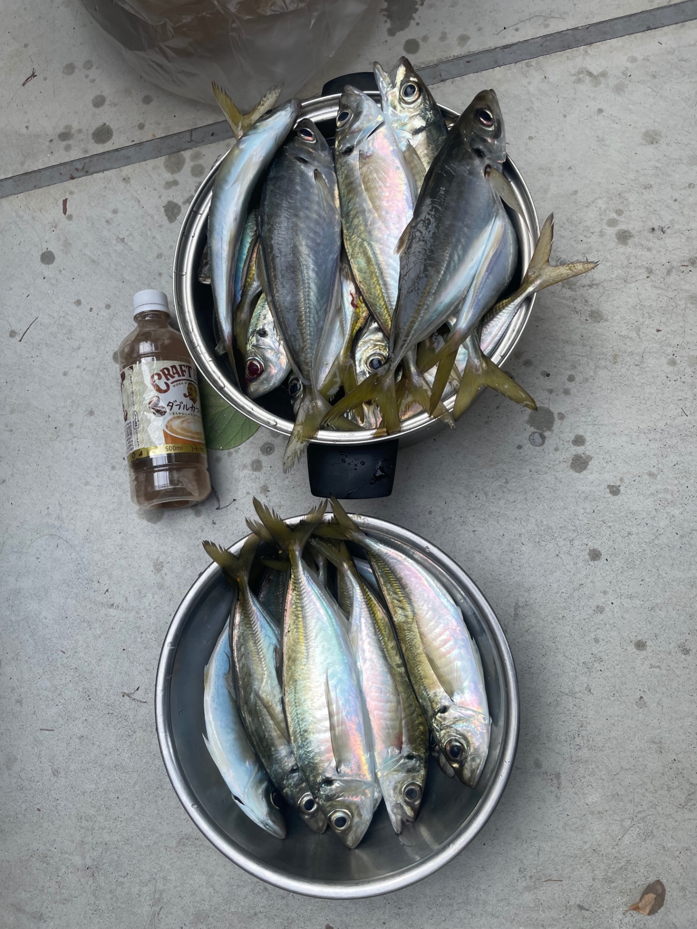今回はあまり時間がなく実績のある常夜灯1箇所で小アジの数釣りと夜明けの地合いに尺アジ狙いの1箇所と2箇所ををまわってきました。