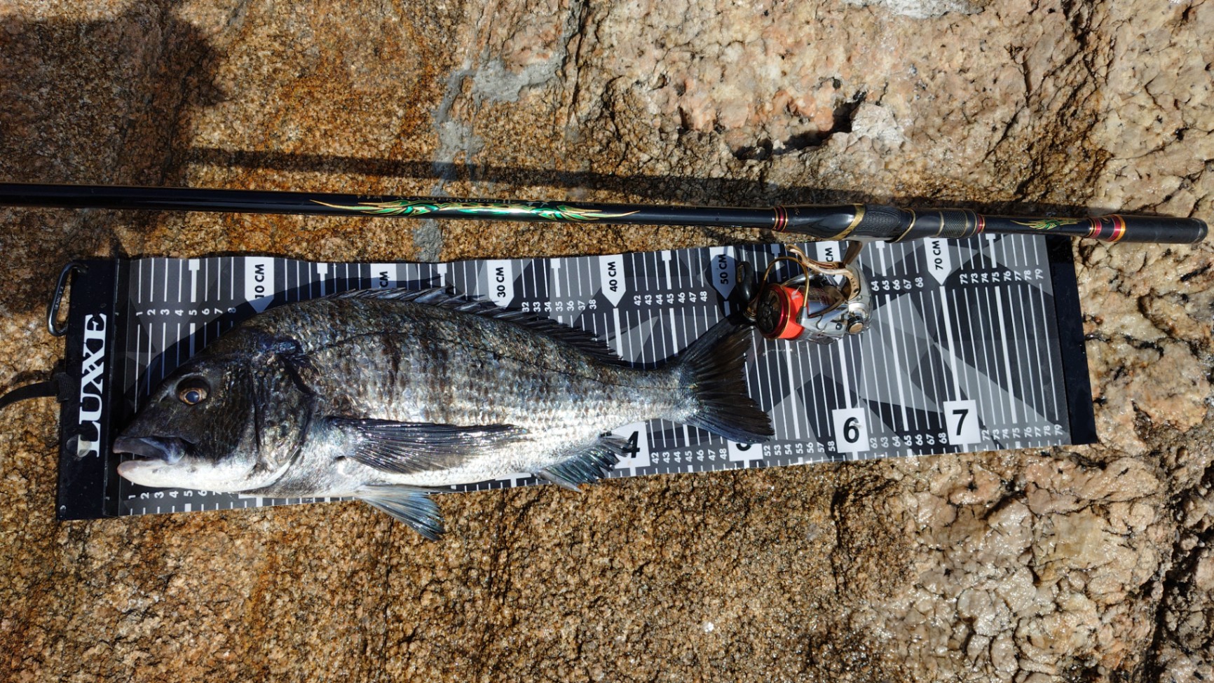 40cm前後が釣れている中、重量感の凄いチヌがヒットした時は慎重になり釣り上げると50オーバーに感動