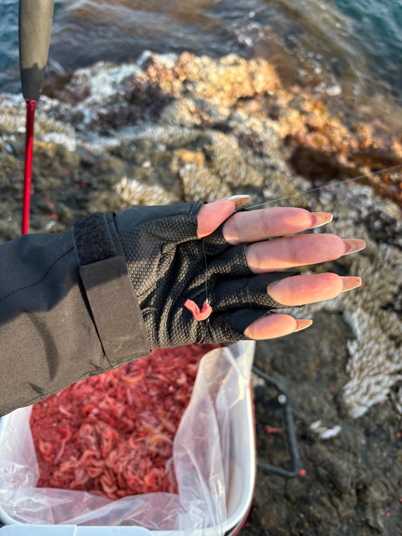小さいグレでもかなりの追い風なので竿が重たく感じ、40cmのグレをやり取りしてるかのような重みを感じました。